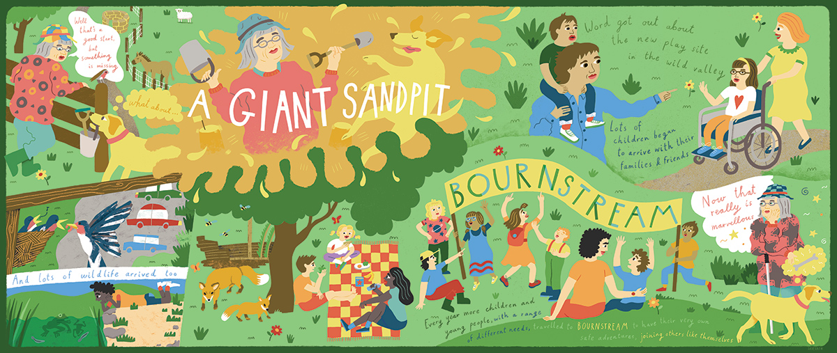 Bournstream play site is the remarkable legacy of Barbara Saxton (1926 - 2008).